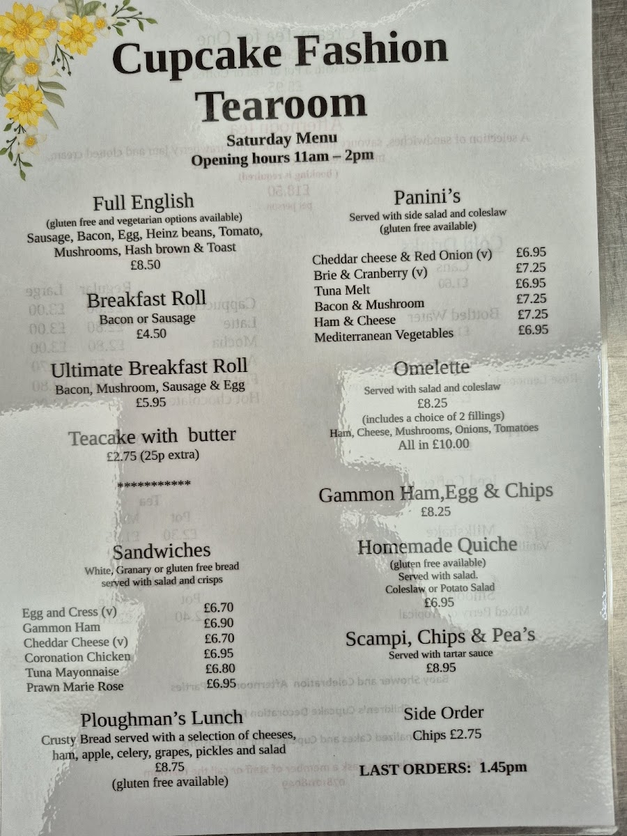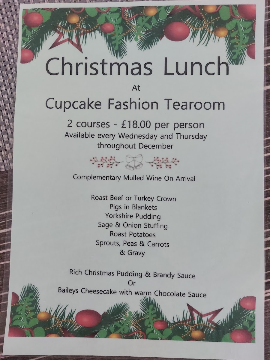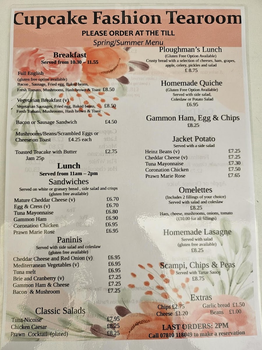 Cupcake Fashion Tea Room Menu